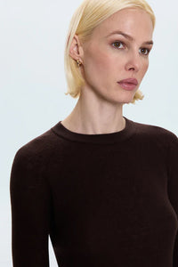 Your perfect fall sweater. Juno delivers featherweight luxury in a timeless, relaxed silhouette that brings understated elegance to any look. The classic crewneck design feels effortlessly refined while the lightweight construction makes it ideal for layering or wearing solo through transitional seasons. Crafted from an elevated blend of 60% merino wool and 40% PVA that feels impossibly soft yet maintains its expert shape. Mocha brings warm sophistication in the rich brown that's defining this season—perfect for anchoring any autumn look