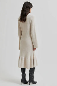 Crafted from a soft, stretchy cotton blend, the Second Female Lise Knit Dress in Sand offers both comfort and style. Its thick ribbed texture provides structure, while the V-neckline and extra-long sleeves add elegant detailing. The finer rib at the hem creates a subtle frill effect, enhancing its feminine appeal. Designed with a wide, relaxed fit, this dress ensures ease of movement and a flattering silhouette for everyday wear.