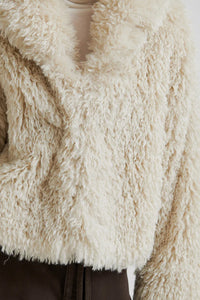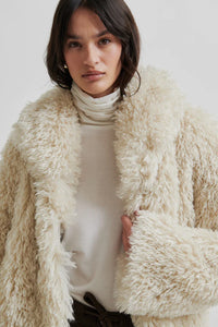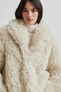 The Second Female Ophie Jacket offers a sophisticated take on cozy outerwear. Crafted from an ultra-soft, shaggy fabric resembling sheep’s wool, this jacket provides both warmth and texture. Its regular fit and relaxed, slightly boxy silhouette ensure comfortable layering, while the fully lined interior enhances durability and comfort. The design features a concealed hook-and-eye front closure and hidden pockets, delivering a clean, streamlined look perfect for refined casual wear.