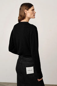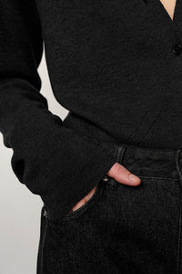 The HERSKIND Anderson Knit Bodystocking in black combines sleek design with expert craftsmanship. Featuring long sleeves and a deep V-neckline, this bodysuit emphasizes both comfort and elegance. Its front button closure allows for easy wear while enhancing the garment’s refined silhouette, making it a sophisticated layering piece or a standout on its own.