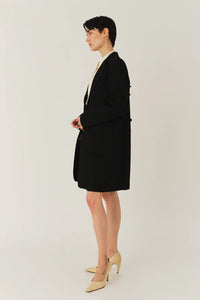 The Garment Balli Bow Coat showcases a refined straight silhouette with a button-front closure for easy layering. Its midi length offers versatile coverage, while large front pockets combine practicality with style. A subtle bow detail at the back adds a delicate, feminine touch, balancing classic structure with gentle elegance. Perfect for elevating everyday looks with understated sophistication.