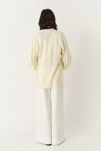 The Garment Como Sleeve Cardigan is expertly crafted from a luxurious cashmere blend, combining softness with durability. It features a refined button closure and rib-knit detailing at the Y-neck, hem, and cuffs, while the exposed seam at the hem offers a subtle contemporary touch. The relaxed silhouette complements elegant balloon sleeves, delivering a sophisticated yet comfortable layering piece perfect for cooler seasons.